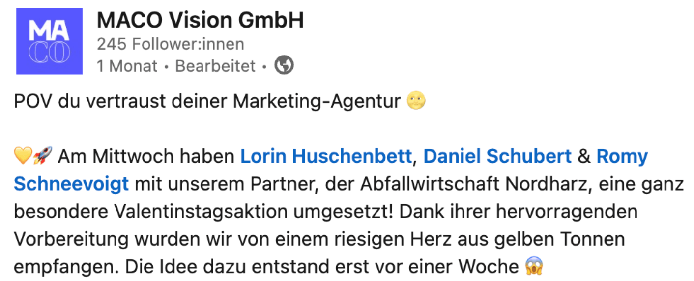 • Teile regelmäßig Neuigkeiten, Branchen-Insights oder Erfolgsgeschichten in deinem Netzwerk.