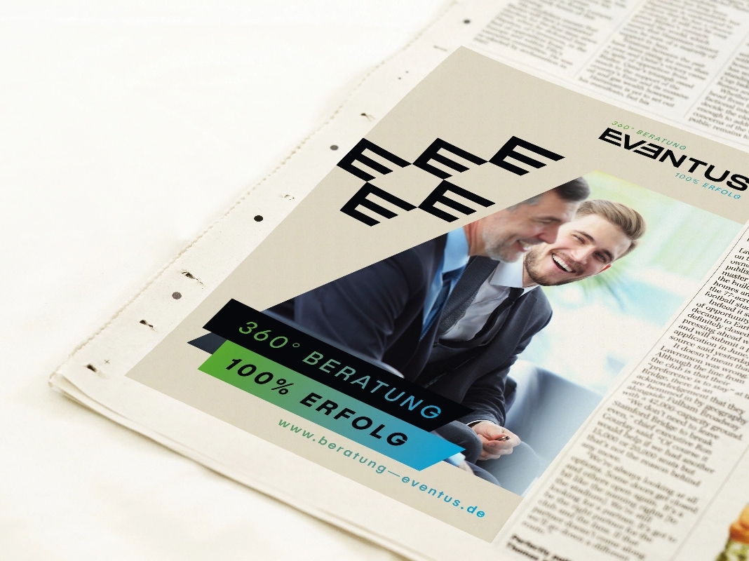 Das lateinische Wort „EVENTUS“ steht für Ergebnis, Erfolg und Ereignis – genau diese drei Dimensionen bilden den Kern von dieser Mission. Mit umfassendem Fachwissen und persönlicher Betreuung schafft EVENTUS eine ganzheitliche Lösung für Marketing, Steuer- und Rechtsberatung sowie Wirtschaftsberatung. Und wir haben ganzheitliche Lösungen für den Relaunch des Corporate Designs von EVENTUS. Entdecken auch Sie die Vorteile der Zusammenarbeit und schreiben Sie gemeinsam Ihre Erfolgsgeschichte.