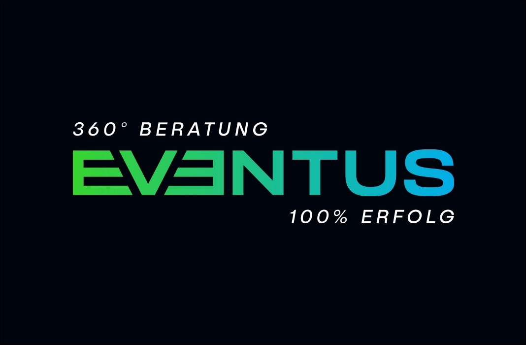 Die Primärfarben, darunter Leuchtgrün, Lichtblau und Schwarzblau, setzen einen subtilen Kontrast zur Strenge der Schrift, bewahren jedoch stets die professionelle Atmosphäre. Die Subline unterstreicht wiederum gekonnt die Unternehmensphilosophie und gibt einen Einblick in die Werte von EVENTUS – sie ist ein Versprechen an alle Kunden und Partner des Unternehmens.