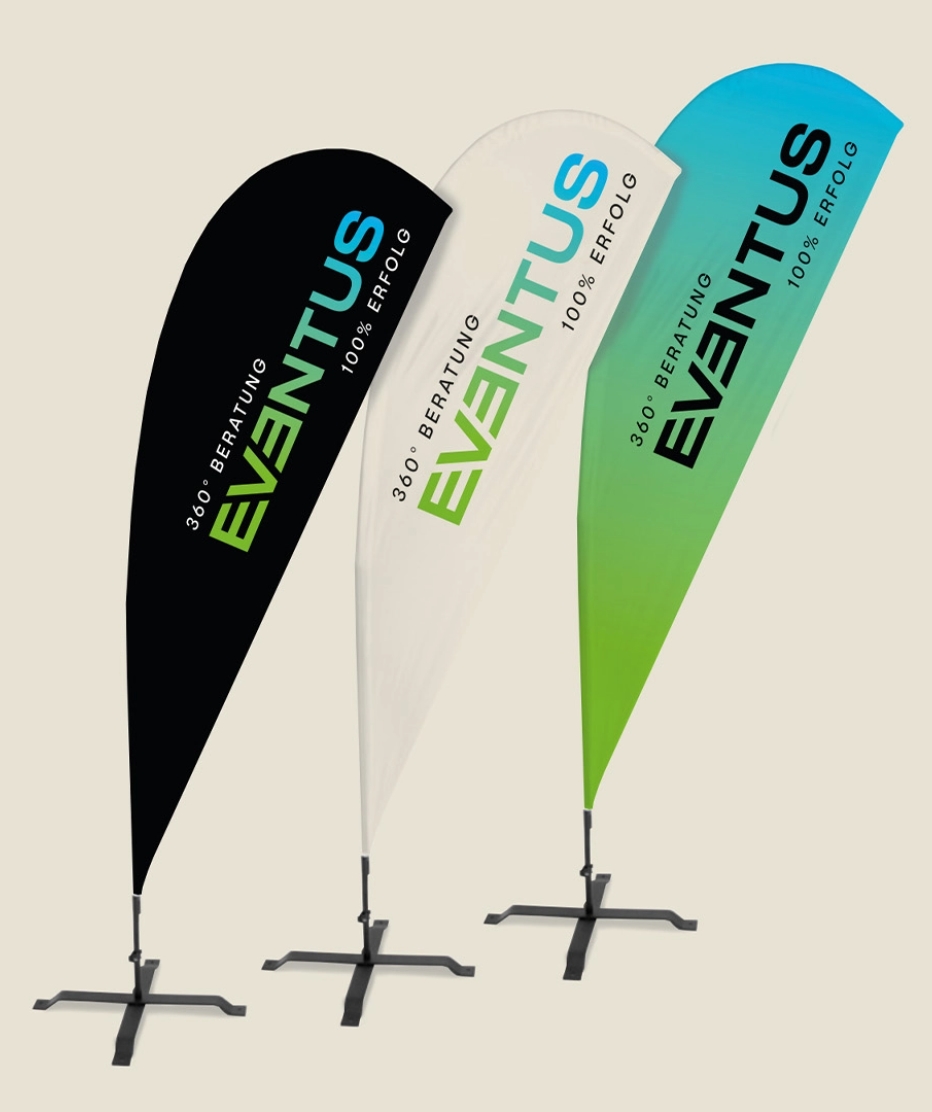Um ein einheitliches Design sowohl intern als auch extern zu etablieren und Professionalität auszustrahlen, setzt EVENTUS auf eine Reihe von Printprodukten. Intern werden Broschüren, Flyer und das Briefpapier beispielsweise im Corporate Design gestaltet, um eine konsistente Markendarstellung sicherzustellen. Extern werden verschiedene Maßnahmen ergriffen, um Aufmerksamkeit zu erregen und Professionalität zu demonstrieren. Von der Autobeklebung, die fahrend viele Menschen erreicht, über Zeitungsanzeigen bis hin zu Beach Flags und Flaggen, so steigern Sie gezielt die Bekanntheit Ihres Unternehmens und sprechen potenzielle Kunden an.