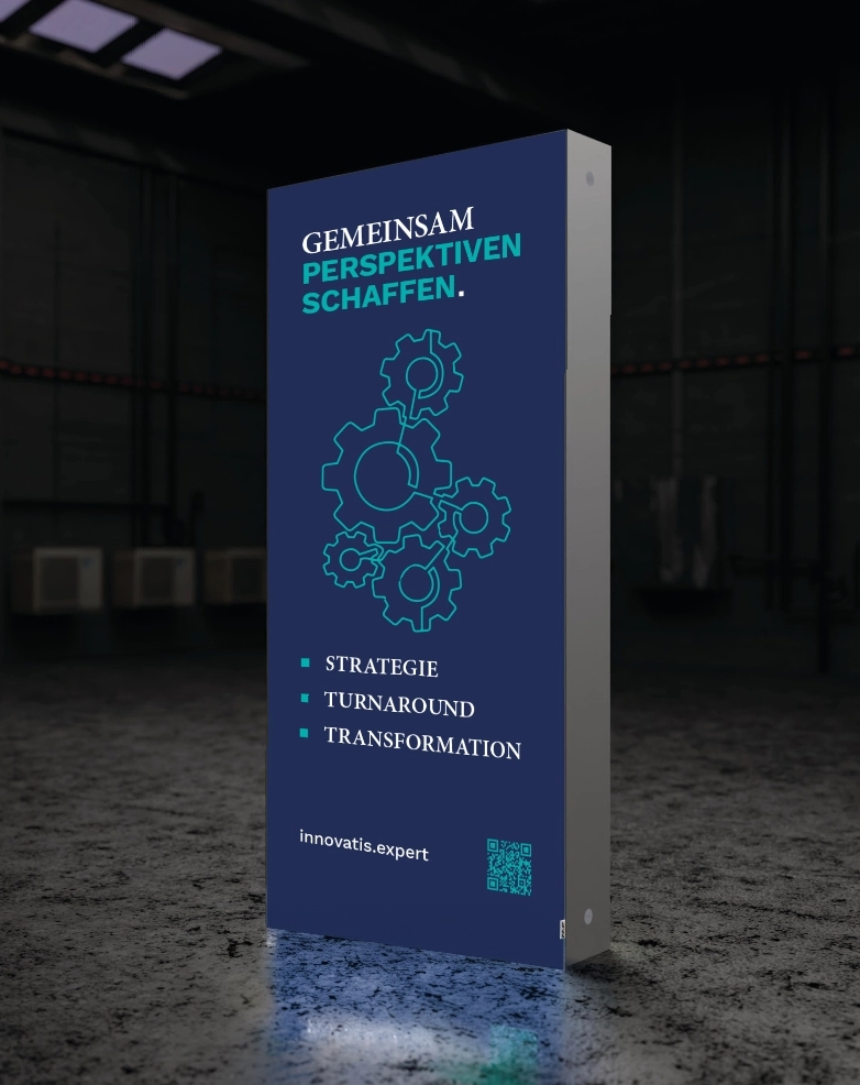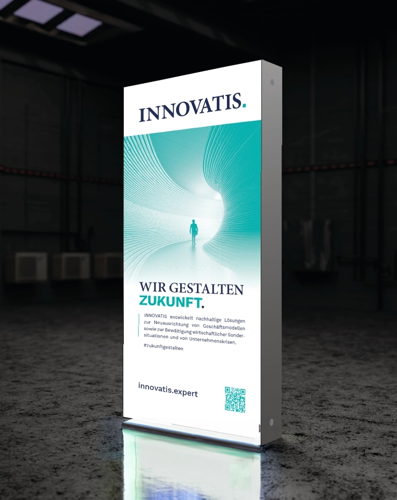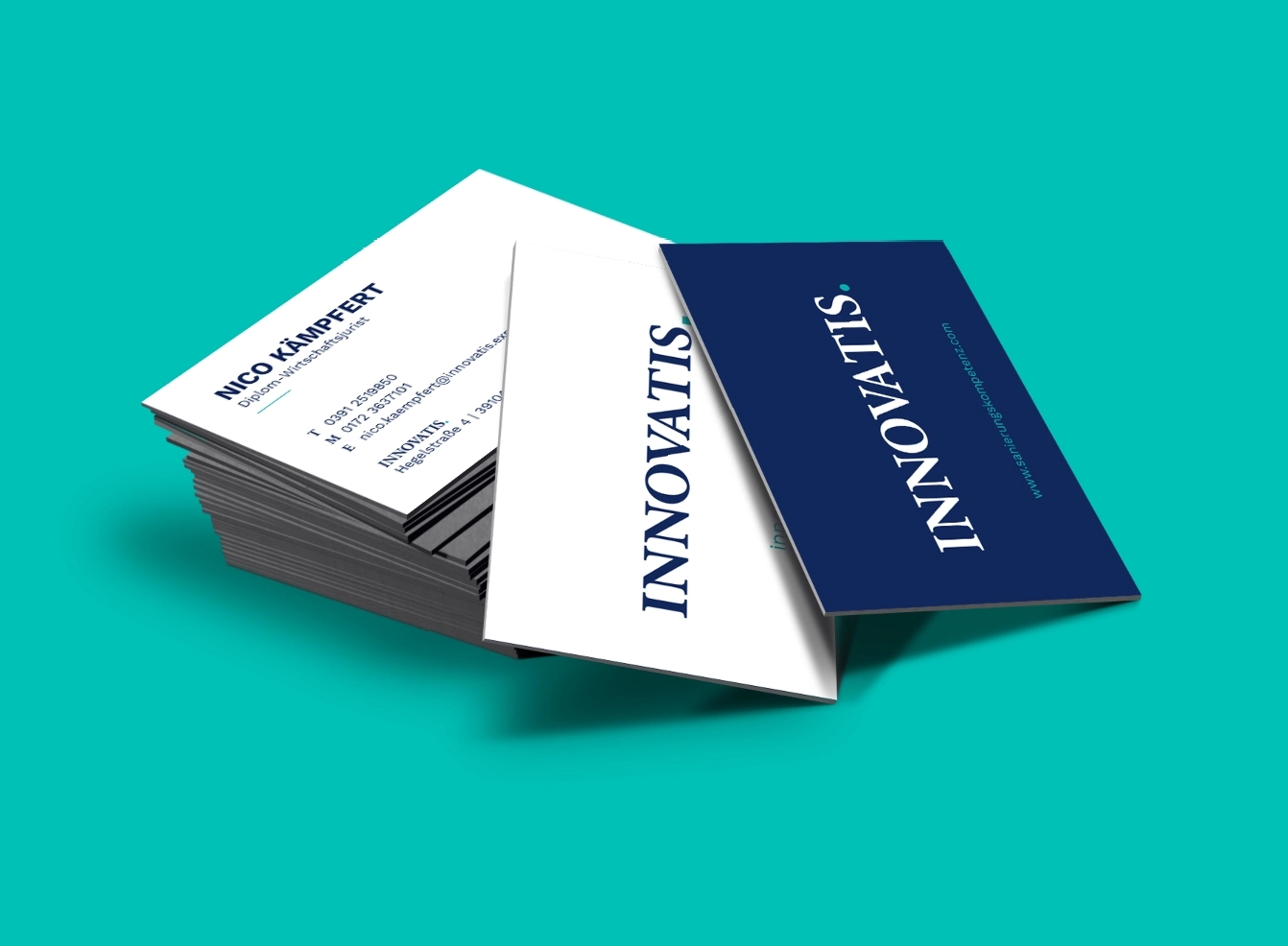 Das frische und moderne Corporate Design von INNOVATIS spiegelt sich nun auch auf den gedruckten Materialien wider, die jedem Geschäftsanlass den perfekten Glanz verleihen. Für die Geschäftsausstattung haben wir nicht nur Visitenkarten entwickelt, die beim ersten Eindruck überzeugen, sondern auch Briefbögen, die Professionalität und Stil vereinen. Auch im Bereich der Außenwerbung haben wir die Marke INNOVATIS in Szene gesetzt. Mit einer kreativen Zeitungsanzeige, die Aufmerksamkeit erregt und Interesse weckt, sowie leuchtenden Aufstellern, die Aufmerksam auf Messen erweckt. Diese Printprodukte sind nicht nur ein Spiegelbild des neuen Corporate Designs von INNOVATIS, sondern auch ein Statement für Innovation, Stil und Professionalität.