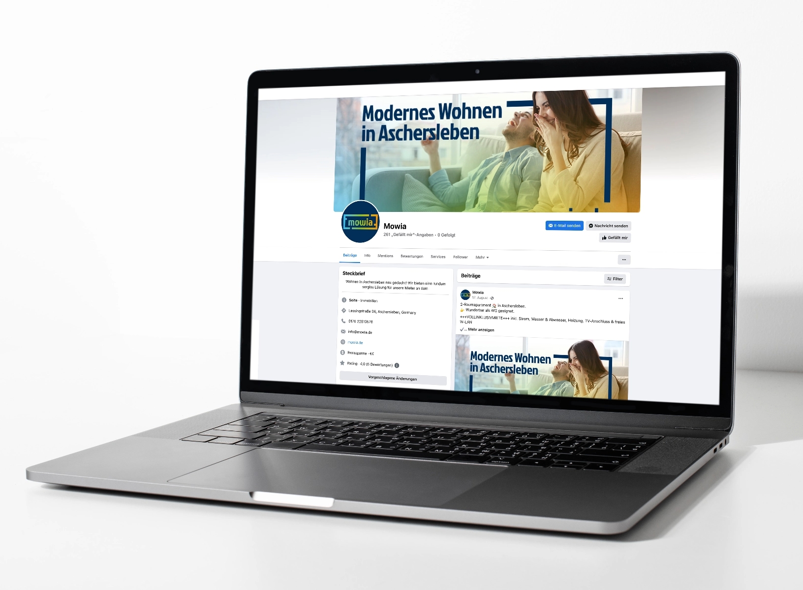 Die Fotos der Immobilien und Events eignen sich natürlich auch für einen professionellen Social Media Auftritt, wodurch eine große Zielgruppe erreicht werden kann. So präsentiert sich MOWIA auf Facebook mit aktuellen Wohnungsangeboten, Updates neuer Projekte und Eindrücken der Events. Auch hier gibt es immer etwas zu entdecken und so bleiben Sie immer auf dem Laufenden.