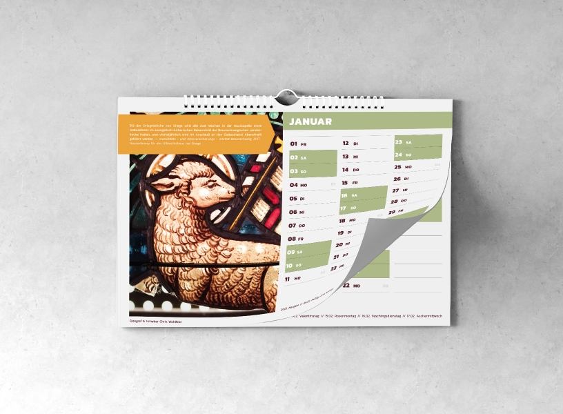 Printprodukte waren ein wesentlicher Bestandteil des Fundraisings für das Projekt. Um Spenden zu sammeln, wurden unter anderem Jahreskalender entworfen und verkauft, die eindrucksvolle Fotografien der Stabkirche und ihrer Umgebung zeigten. Diese Kalender boten nicht nur einen praktischen Nutzen, sondern weckten auch das Bewusstsein für den Erhalt der Kirche.