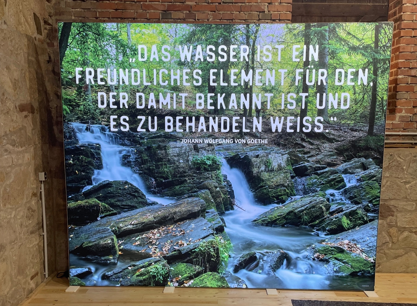 Auch in Wendefurth haben wir uns an die Innen- und Außengestaltung des Infocenters gewagt und ein Konzept entwickelt und umgesetzt, welches die Moderne und Seriosität des Verbandes widerspiegelt. Gleich beim Betreten des Infocenters werden Sie von einem einladenden Willkommensschild begrüßt, das den ersten freundlichen Eindruck vermittelt.