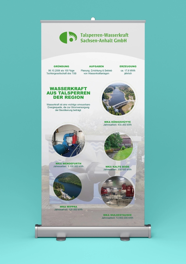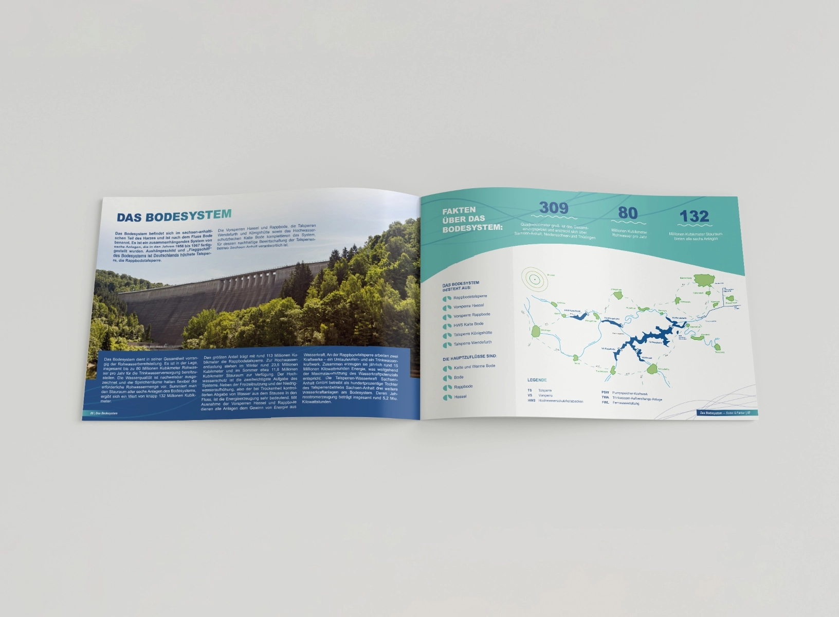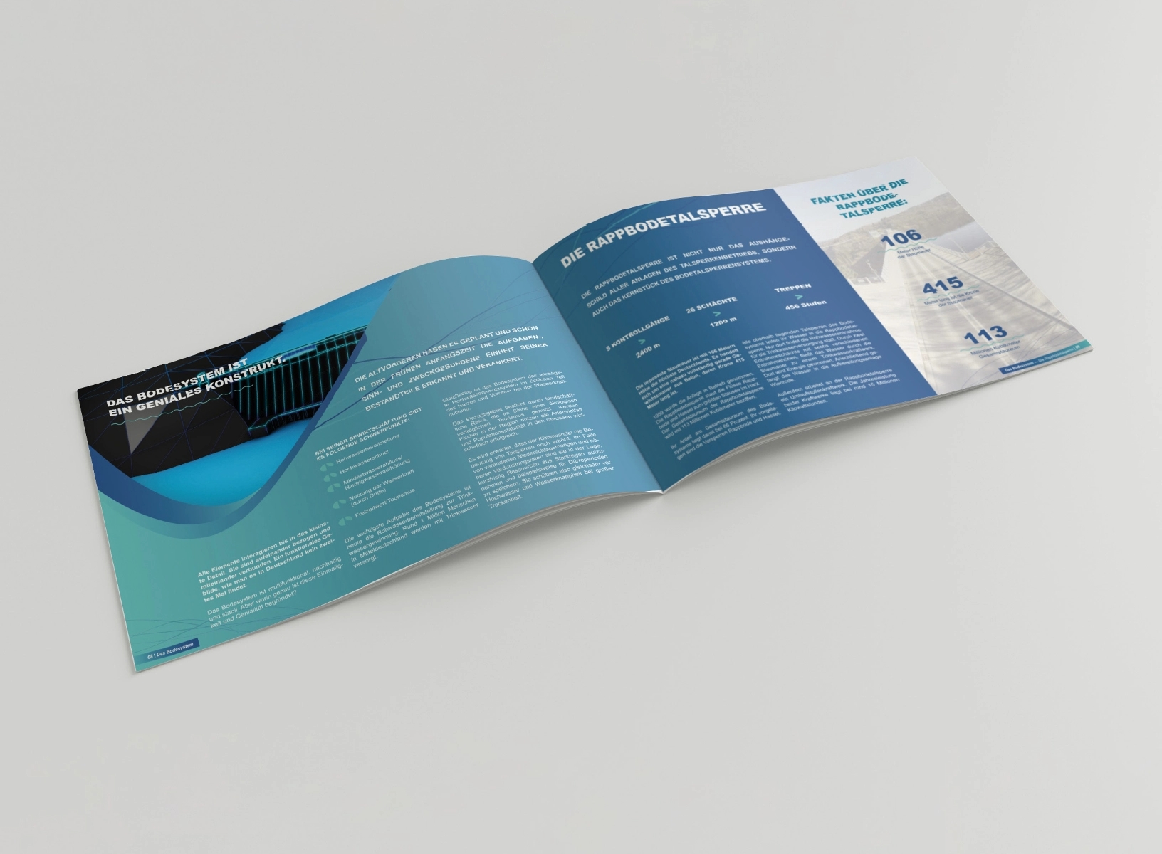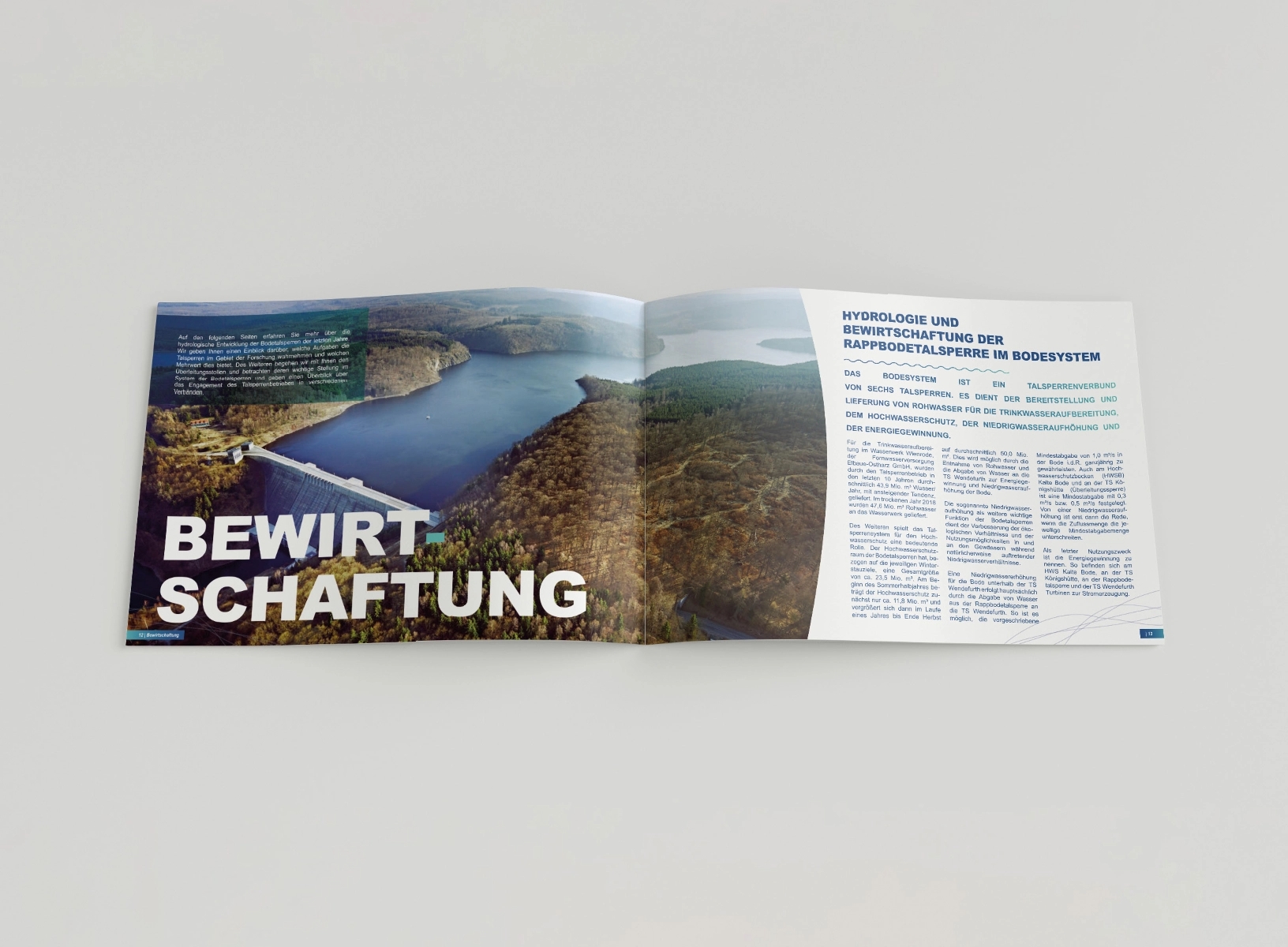 Tauchen Sie ein in die faszinierende Welt der Talsperren und Gewässer Sachsen-Anhalts! Durch eine erste Anfrage für ein Konzept begleiten uns die spannenden Projekte des Talsperrenbetriebs seit 2019, angefangen mit der Jubiläumsbroschüre gehen wir gemeinsam auf eine Reise durch die Geschichte und aktuelle Entwicklungen rund ums Wasser. Erleben Sie das alles in einem einheitlichen Design mit modernen Farben und einer ansprechenden Gestaltung, die nicht nur Printprodukte, sondern auch Räumlichkeiten zum Leben erwecken.