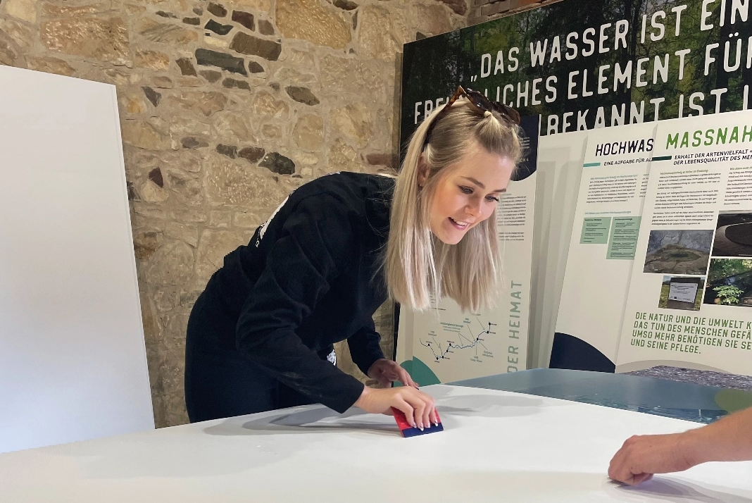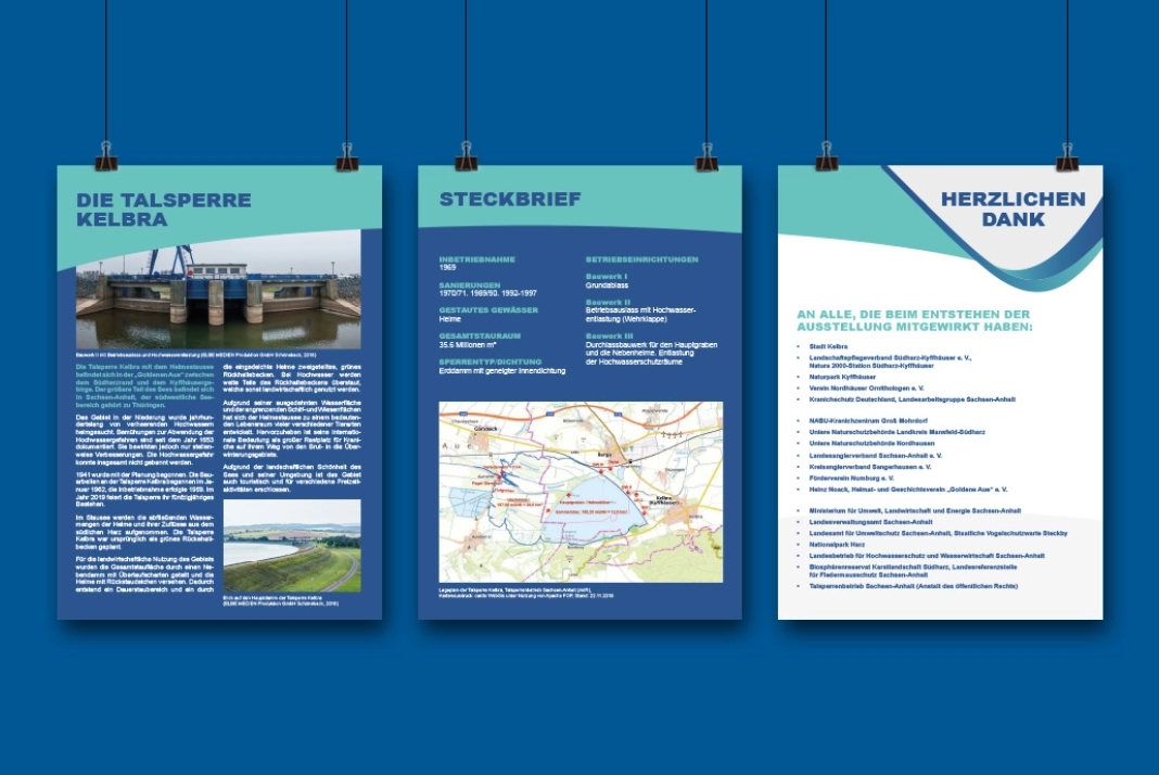 Besonders die Plakate und Roll-Ups spielen eine zentrale Rolle in der Ausstellung: Sie veranschaulichen die vielfältigen Aspekte des Helmestausees, von seiner Wichtigkeit als Bauwerk und dessen Umfeld als Lebensraum für zahlreiche Arten. Diese visuell ansprechenden Elemente sind entscheidend, um die komplexen Themen zugänglich und verständlich zu machen.