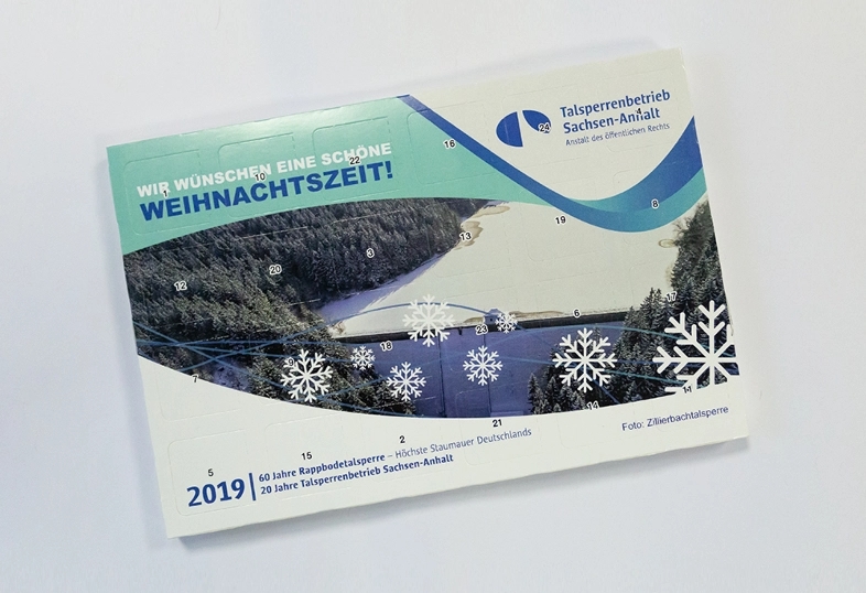 Wir haben vorerst die Gestaltung des Talsperrenbetreibs Sachsen-Anhalt modernisiert und durch frische Farben ergänzt. Daraufhin entstanden vielfältige Infoplakate, die wichtige Hinweise und Informationen zu verschiedenen Talsperren und den Hochwasserschutz vermitteln. Unsere ansprechenden Einladungskarten laden zu unterschiedlichen Events und Projekten ein, während ein liebevoll gestalteter Weihnachtskalender als besonderes Goodie dient.