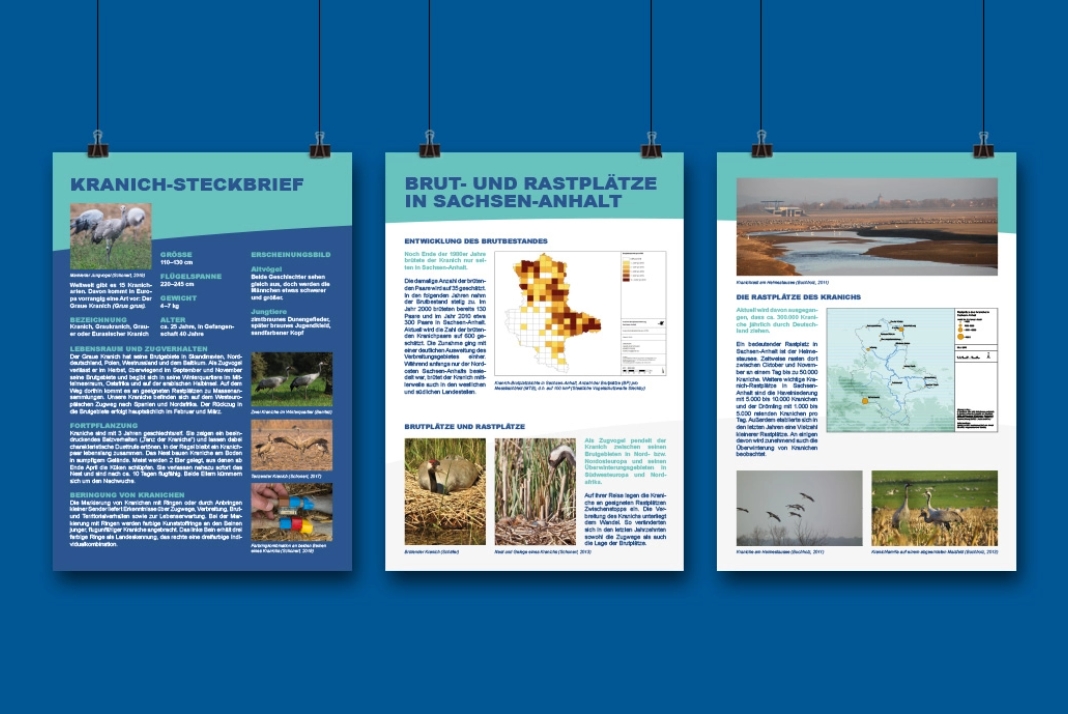 Wir hatten nicht nur das Vergnügen, die Eröffnung der Ausstellung mitzuerleben, sondern haben auch das Konzept sowie die Printprodukte entwickelt und gestaltet. Die Ausstellung beleuchtet die Bedeutung des Europäischen Vogelschutzgebiets „Helmestausee Berga-Kelbra“ als wichtigen Rastplatz für Kraniche während des Vogelzugs. Zusätzlich werden Themen wie Hochwasserschutz sowie die vielfältige Flora und Fauna des Stausees vorgestellt.
